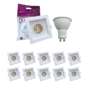 Kit 10 Spot Embutido Lampada Mr16 Quadrado Recuado Cor Branco Dicroica Gu10 Saveenergy Direcionavel